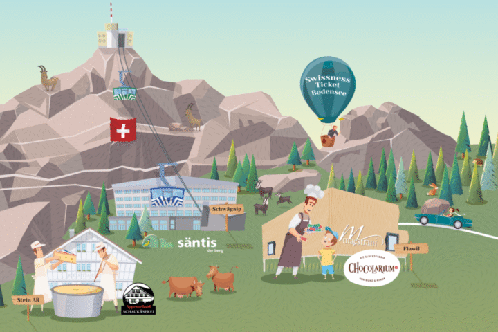 The combined ticket includes admission to the Chocolarium and the Appenzeller® Cheese Dairy as well asthe ascent and descent to the Säntis with the suspension railway.